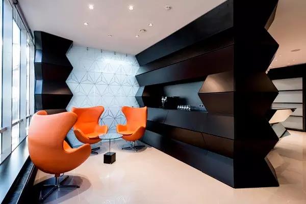 在前臺接待前臺區放置一些橙色紅色等亮色系元素的椅子沙發或是裝飾品能夠很好的調動營造一個有生機有活力的氛圍。讓顧客不會有壓抑的感覺,也能很好的調節顧客緊張不適的心里,讓顧客對公司有一個好的第一印象。