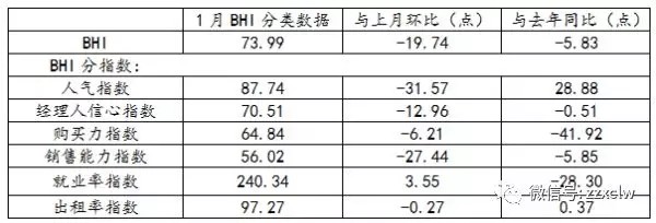 1月份全國建材家居景氣指數(BHI)為73.99,環比下降19.74點,同比下降5.83點。